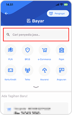 2. Klik bagian kolom pencarian “cari penyedia jasa”.