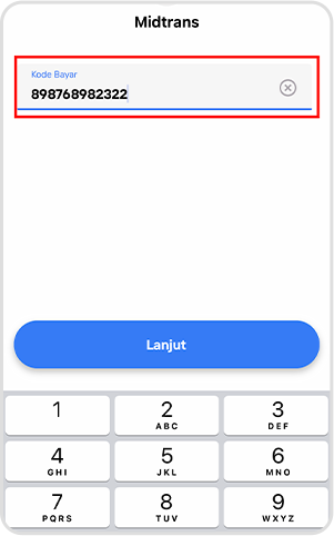 4. masukkan kode pembayaran yang sudah anda terima. Lalu klik lanjutkan.